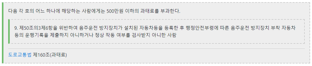 음주운전방지장치를 임의로 해제 조작하다 적발되면 3년 이하의 징역 또는 3,000만원 이하의 벌금